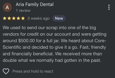 Many dentists are unaware of the real value of their dental scrap. In the past, dental offices were forced to sell their dental scrap to middleman who would come into their office, purchase their scrap for pennies on the dollar and turn around and sell it to a refinery. Many of these middlemen often call themselves "refining companies" even though they simply resell the purchased material with little actual processing or testing.